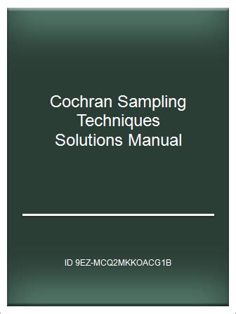 At present you are looking for an Cochran Sampling Techniques Solutions Manual example that will we provide here in some form of document formats such as PDF, Doc, Strength Point, and in addition images that will will make it easier for you to create an Cochran Sampling Techniques Solutions Manual yourself. For a more clear look, you are able to open some examples below. All the illustrations about Cochran Sampling Techniques Solutions Manual with this site, we get from several sources so you can create a better record of your own.