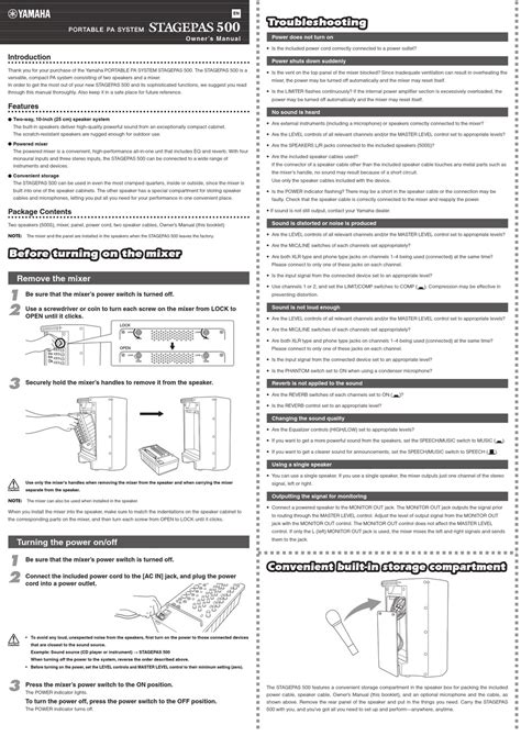 Presently you are looking for an Yamaha Stagepas 500 Service Manual example that will we provide here in some form of document formats many of these as PDF, Doc, Strength Point, and in addition images that will will make it simpler for you to create an Yamaha Stagepas 500 Service Manual yourself. For a clearer look, you are able to open several examples below. All of the good examples about Yamaha Stagepas 500 Service Manual about this web site, we get from several sources so you could create a better record of your own.